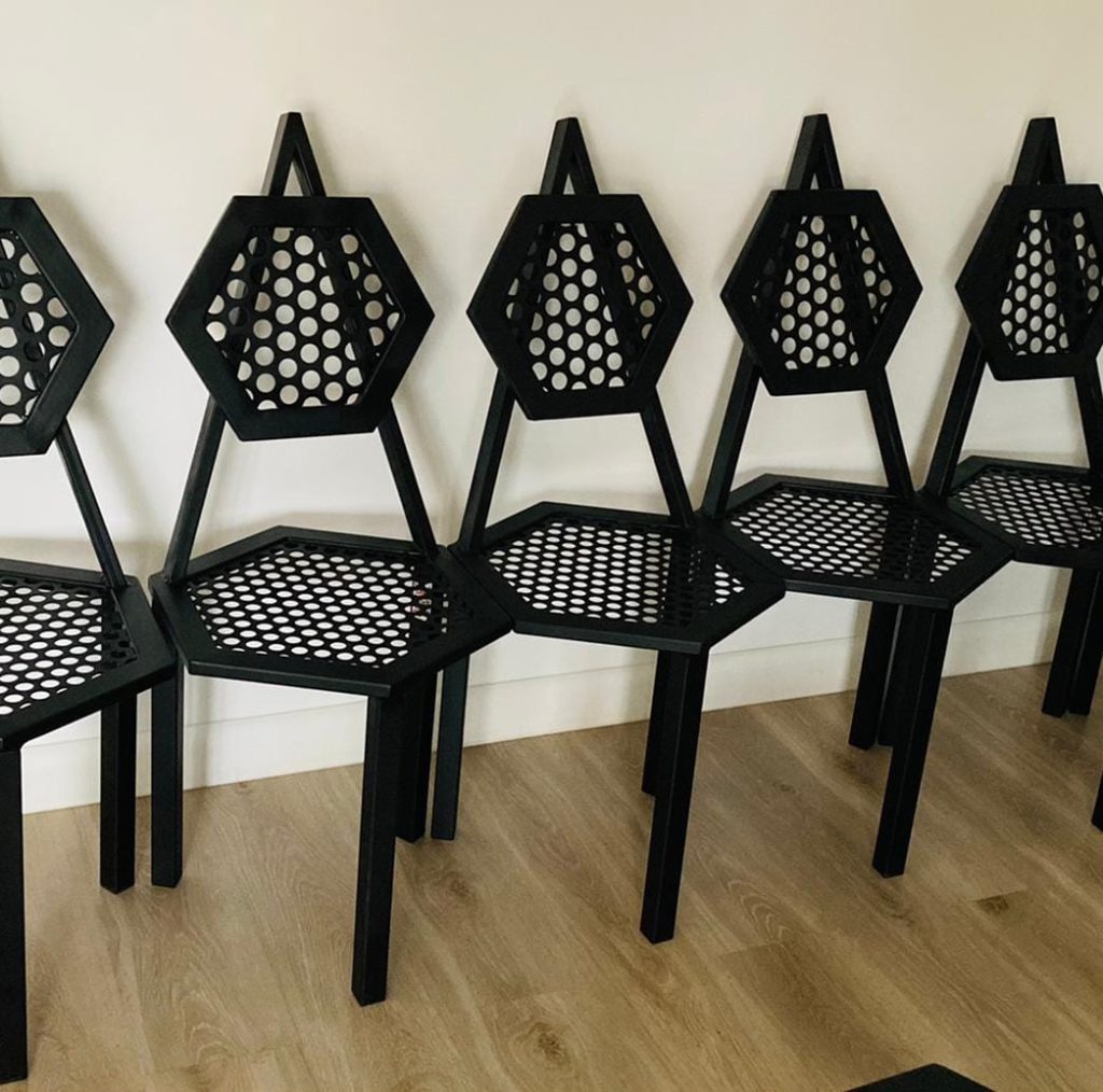 Krzesła i stoły stalowo-drewniane z litego drewna