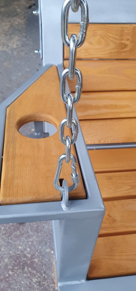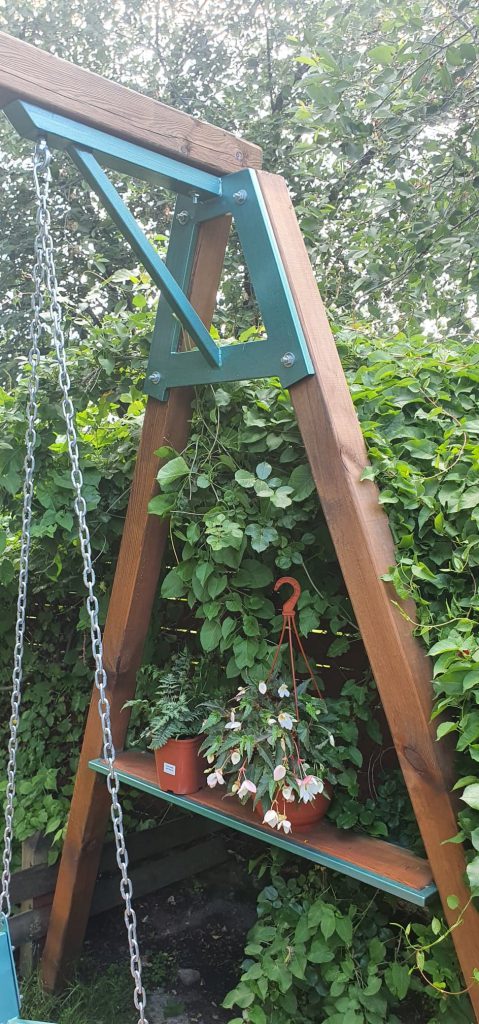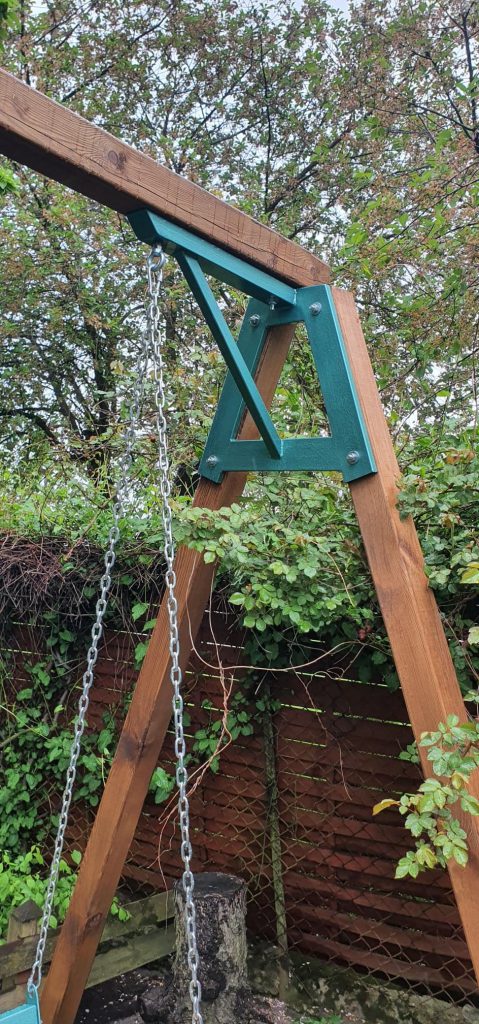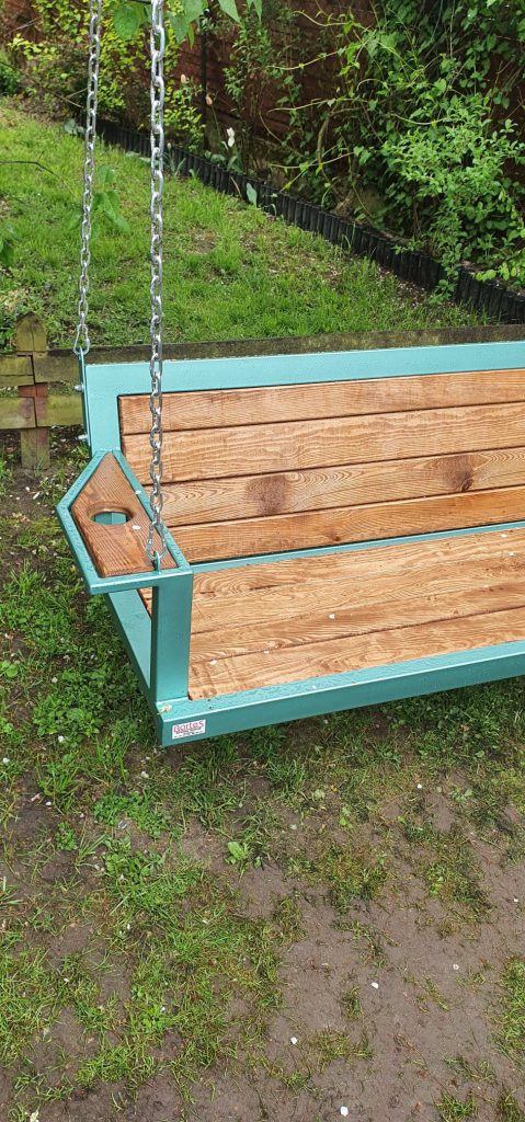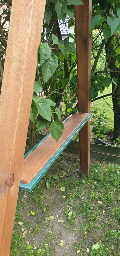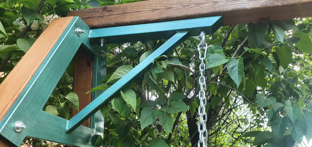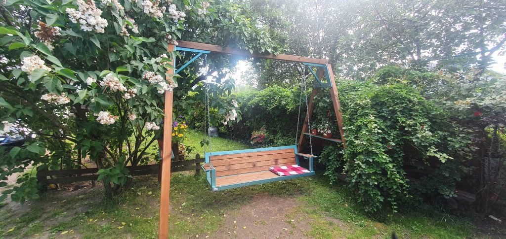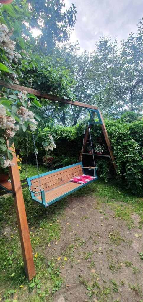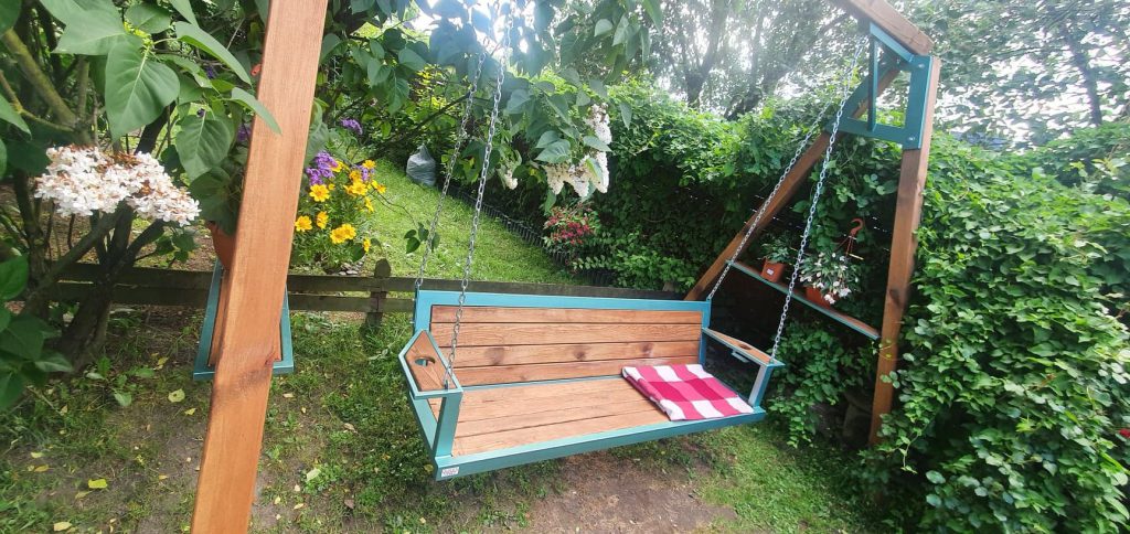 Huśtawki stalowo-drewniane z litego drewna